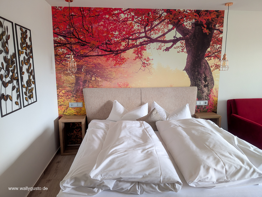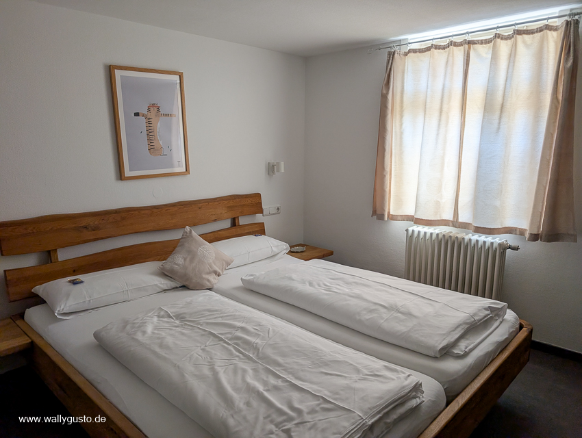 Auch ansonsten weiß das Hotel Garni Westerheim zu gefallen. Die Einrichtung ist sehr stilvoll und gepflegt, was auch auf unser Zimmer zutrifft. Dieses ist nicht nur hübsch eingerichtet, sondern verfügt über einen großen Südbalkon zum Garten hin. Diesen nutzen wir auch gleich nach unserer Ankunft, um ein alkohlfreies Bierchen aus dem Kühlschrank bei der Rezeption zu zischen.