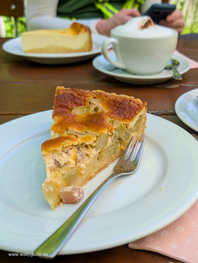 Das Radfahren hungrig macht, habe ich ja schon mal erwähnt, gell? Wir schaffen gerne mit Kuchen und süßen Teilchen Abhilfe. Besonders guten Kuchen bekommen wir im Café Mühlwerk serviert. Nur der Cappuccino hat Luft nach oben, finden wir. Aber bei dem sehr gemütlchen Garten am Mühlbach und der sympathischen Inhaberin ist das halb so wild. Schade ist nur, dass unsere Fahrradtaschen schon zum Bersten gefüllt sind, sonst hätten wir uns im Mühlenladen mit mühlenfrischem Mehl, Kräuter, Ölen und der ein oder andere Süßigkeit eingedeckt.
