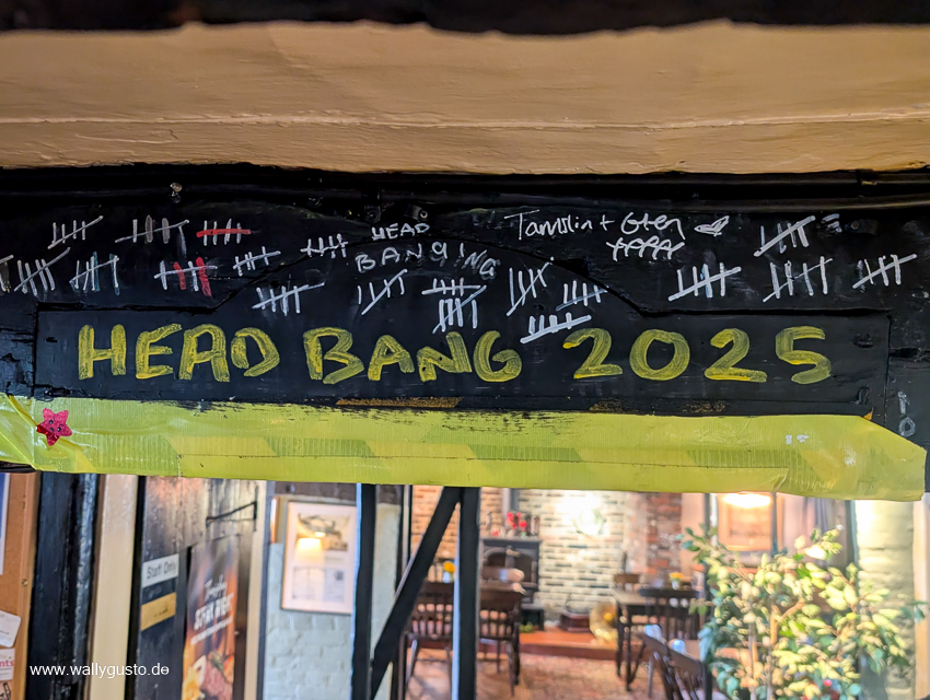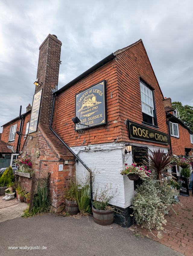 Wie bei unserem letzten Aufenthalt in Südengland entscheiden wir uns für eine Übernachtung im The Rose & Crown im beschaulichen Städtchen Burwash. Das windschiefe Pub mit seinen niedrigen Decken und der gemütlichen Atmosphäre nimmt uns sofort wieder von sich ein. Auch dieses Mal bekommen wir ein winziges, aber modern eingerichtetes und sehr sauberes Zimmer zugewiesen.